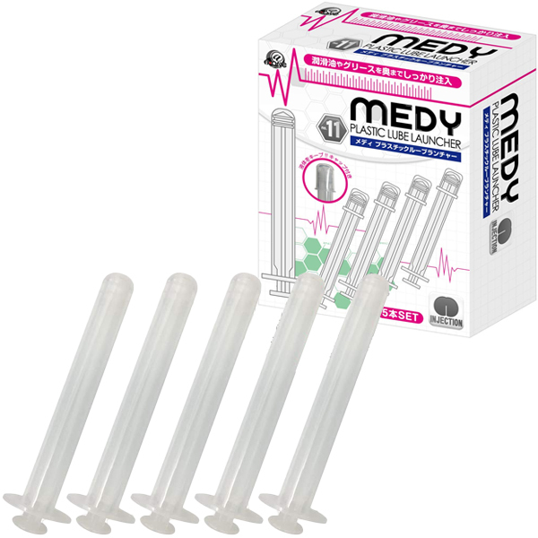 人気のMEDYシリーズに新しい仲間が加わった!!no.11は多機能注入器。ローションやグリースを注入器内に入れ、あらゆる穴にIN。細身のボディなので奥の奥まで注入可能。先端にキャップをはめることで、保管の際に注入器を清潔に保つことができます。さらに、注入器内に液体を入れた状態でキャップをはめると内部が真空状態になり、中の液体をキープすることができます。あらかじめ本体に液体を入れておけば、継ぎ足しもラクラク!!※キャップはカチッというまで押し込んでください。注入器はうれしい5本セット。