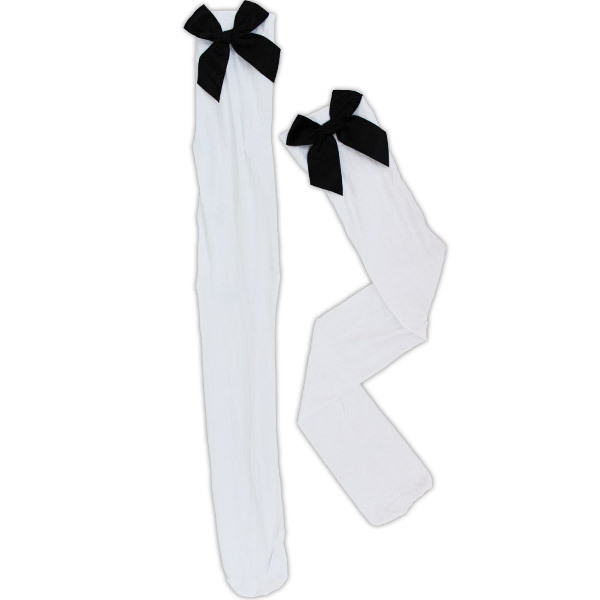 【商品ID:p12242】・【420円★数量限定】リボン付きニーハイ 白×黒リボン<お一人様1点限り>