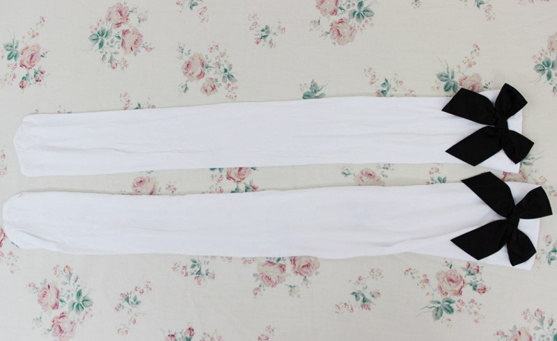 > 【420円★数量限定】リボン付きニーハイ 白×黒リボン<お一人様1点限り>