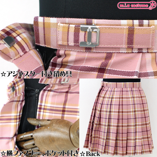 自分流にアレンジして制服コーデを楽しもう!ピンク×キャメルの可愛いチェック柄プリーツスカート単品。ウエスト調節可能なアジャスター付き留め具付きで、サイドには横ファスナーとポケットが付いた機能性抜群の本格派デザイン♪現役学生さんのコーデアイテムとして、コスプレ衣装や制服コスと合わせても可愛い!※色落ちの可能性があるので水洗い&塩素系漂白剤による漂白は不可※水洗い不可、塩素系漂白剤による漂白不可、色落ちの可能性があります。※こちらの商品は在庫の状況によりお届けまでに4日〜7日程度かかる場合がございます。