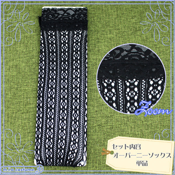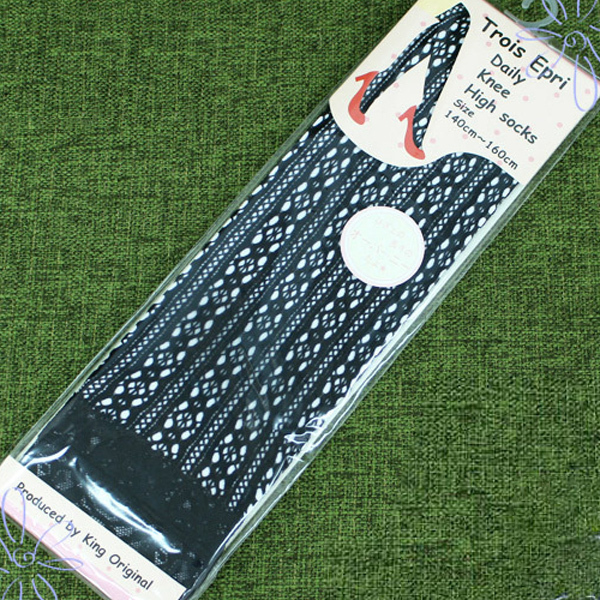 > 【130円★数量限定】レース付き花柄メッシュニーハイソックス 黒 140〜160cm<お一人様1点限り>