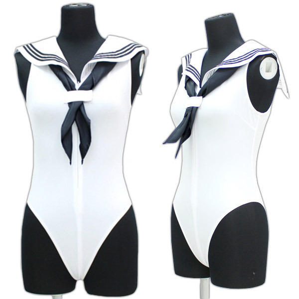 【商品ID:p14349】・【3380円★数量限定】セーラーノースリーブレオタード 白 BIG<お一人様1点限り>